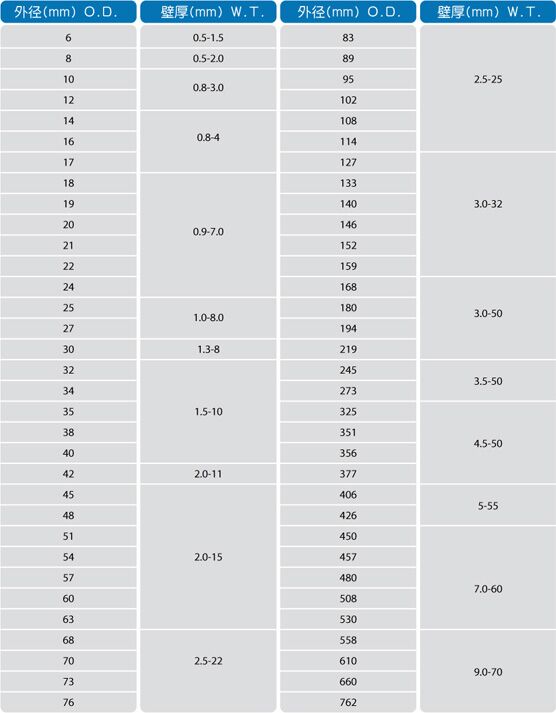 產(chǎn)品尺寸:外徑6mm-762mm